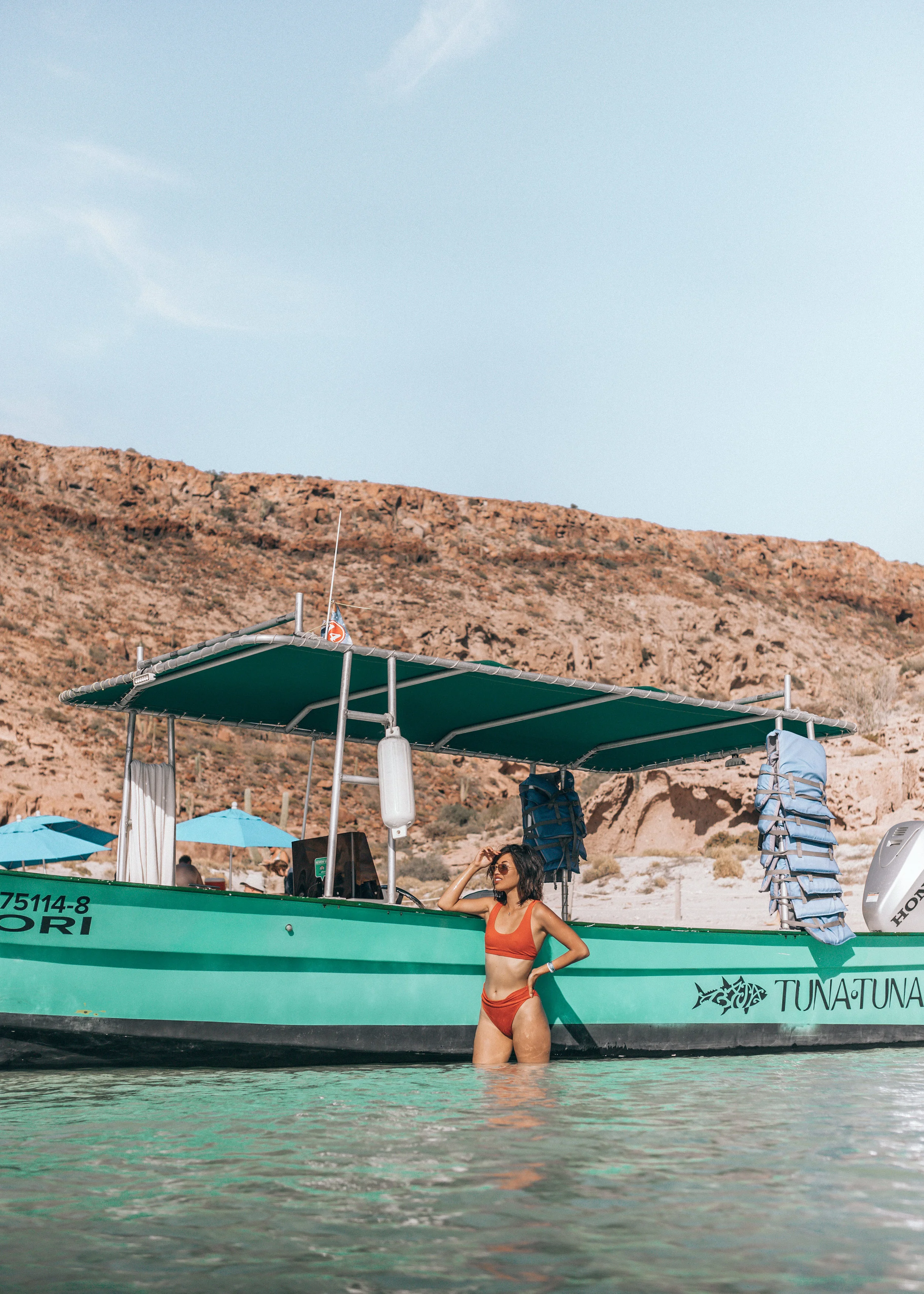Tuna Tuna Tours took us out for the day to the Sea of Cortez, where we got to experience two epic swims and a delicious lunch on the beach. We started with an hour long boat ride to our destination, where the whale sharks were currently eating and safely got into the water to see them up close.